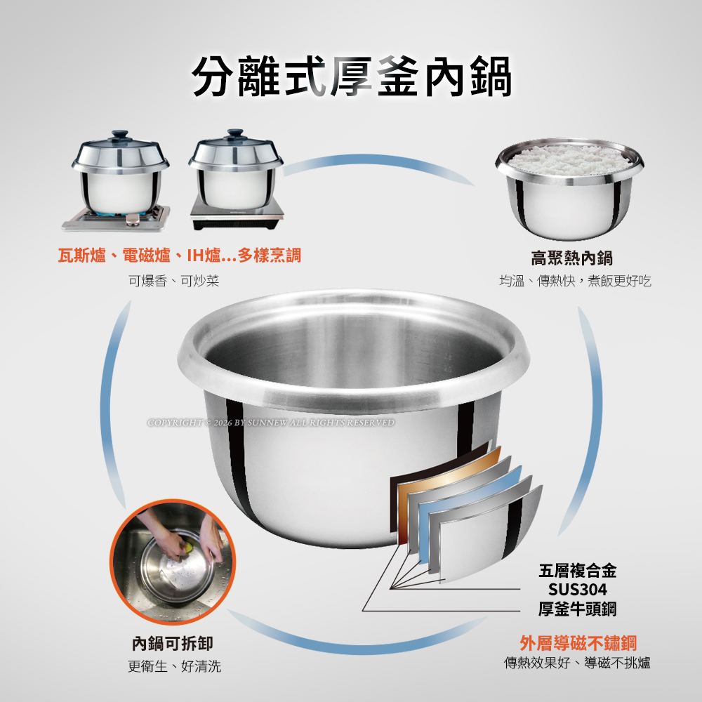 2.領先業界304厚釜分離式內鍋