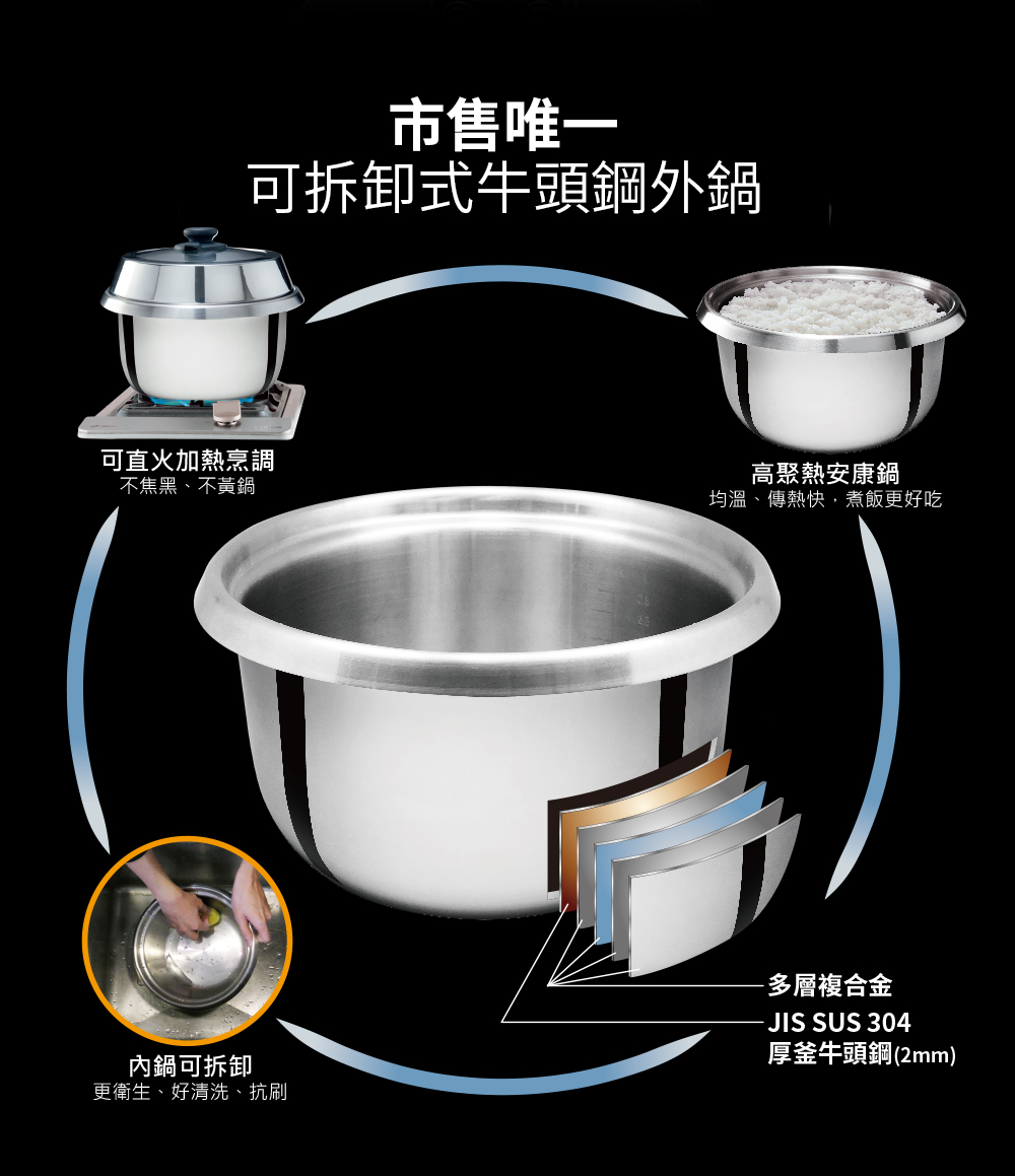 鍋蓋與蒸層:JIS SUS304不銹鋼
