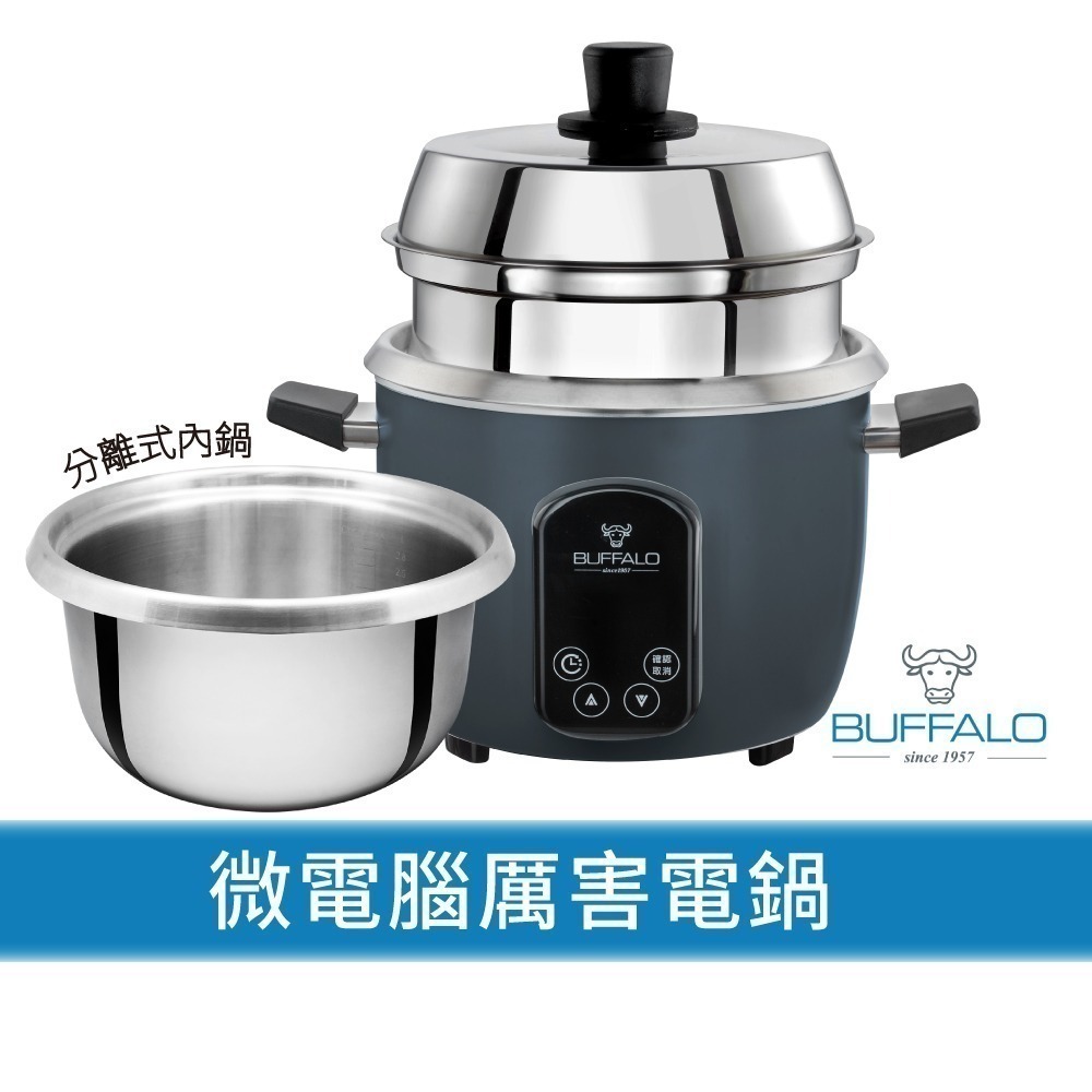 【Buffalo牛頭牌】微電腦多功能厲害電鍋15人(附不銹鋼蒸籠/溫控定時/一鍋三菜/營養烹調)