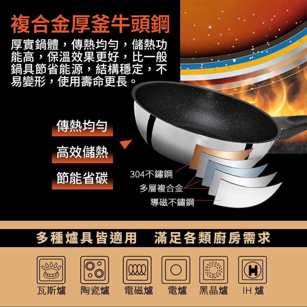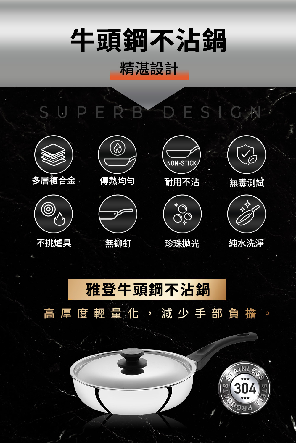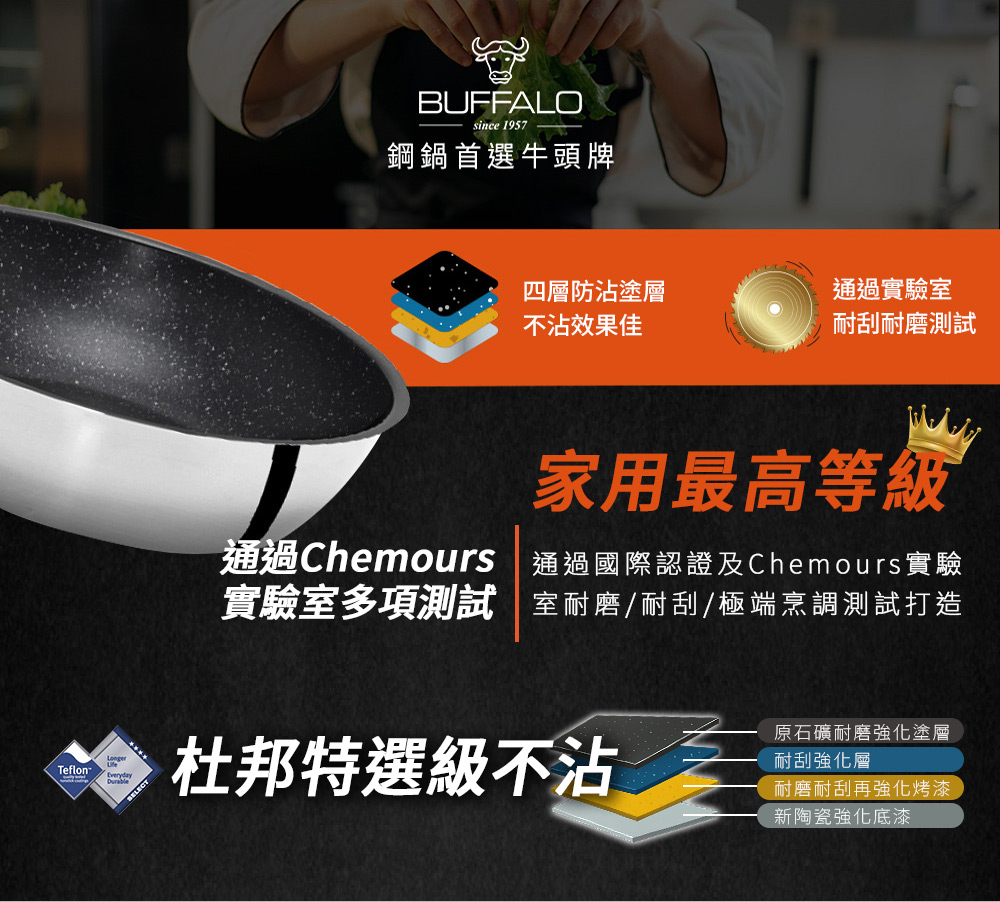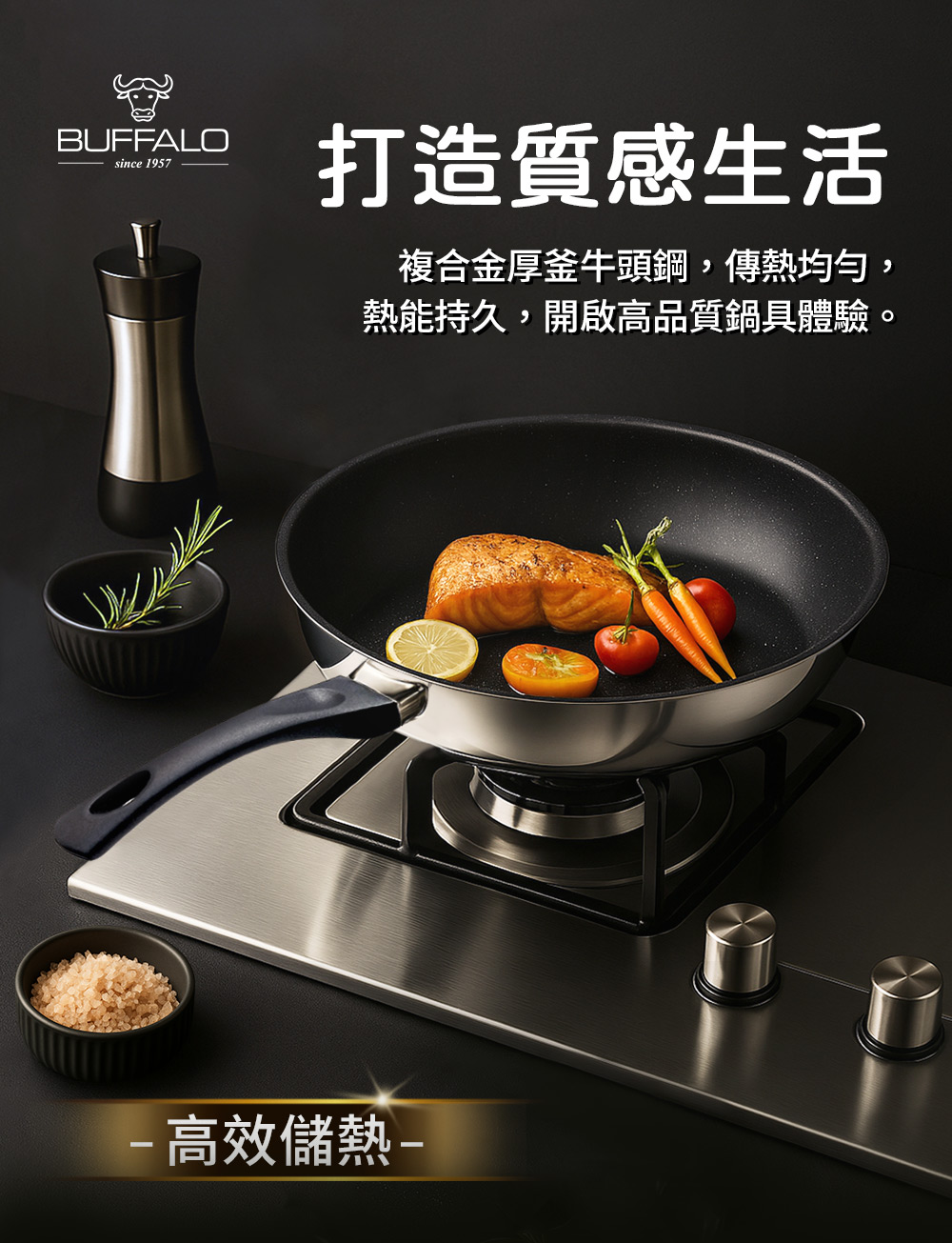 【Buffalo牛頭牌】牛頭鋼不沾平底鍋26/28cm|IH.電磁爐適用 304不鏽鋼 SGS檢驗合格