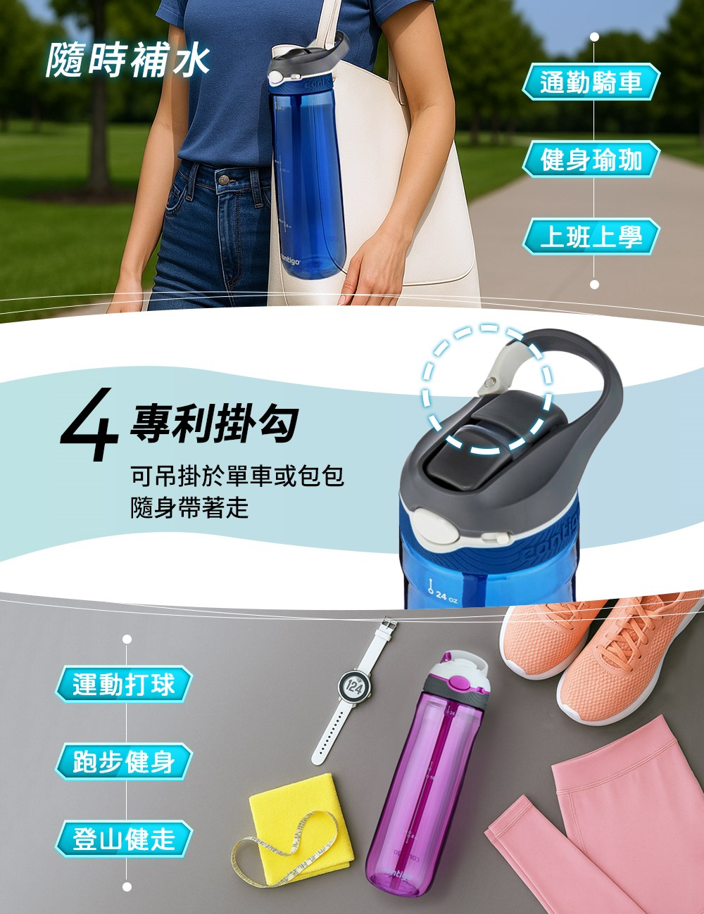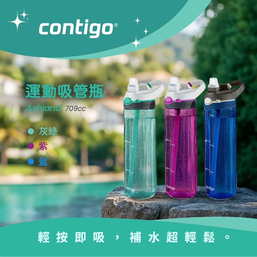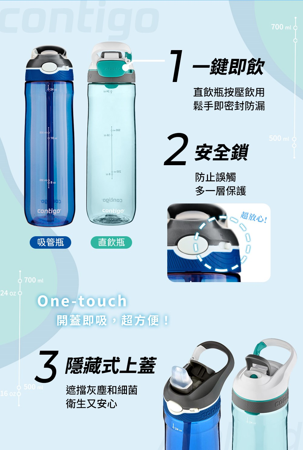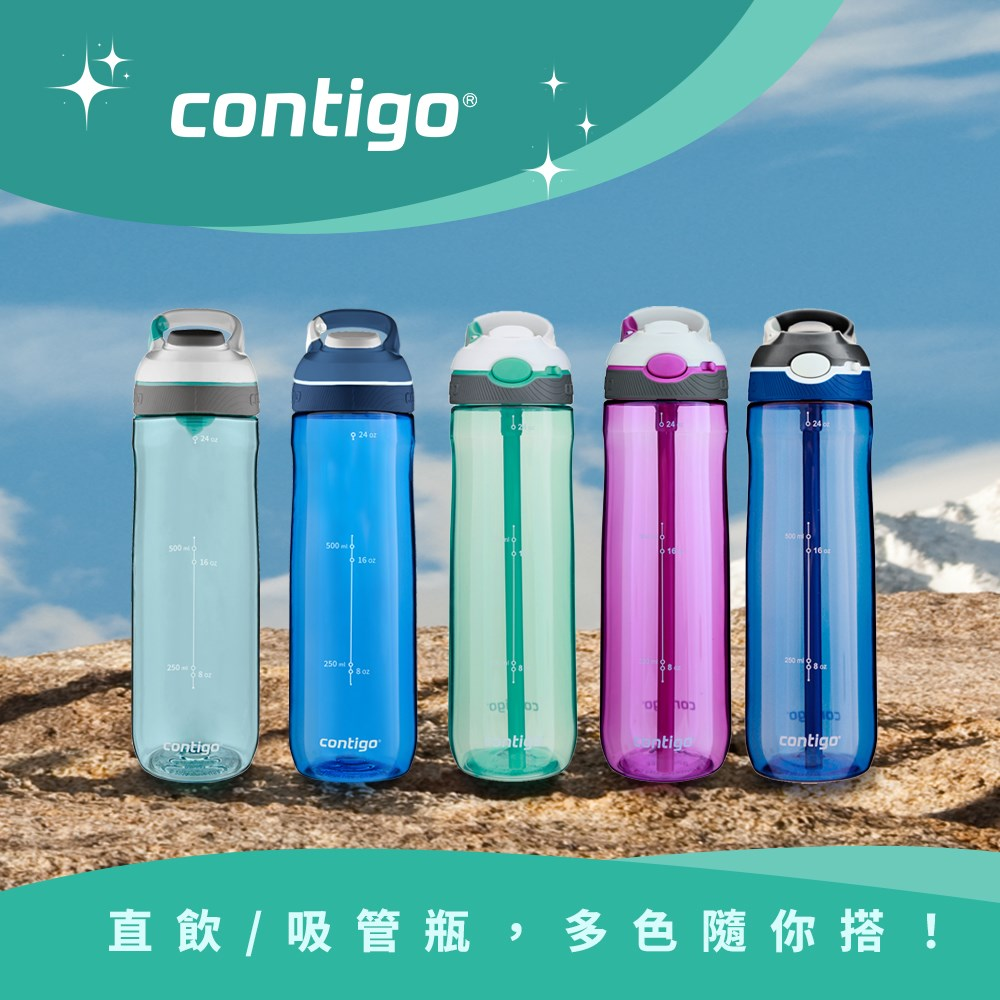 【美國Contigo】買1送1_Tritan防漏彈蓋吸管水瓶709ml(台灣總代理 運動水瓶 水壺 吸嘴)