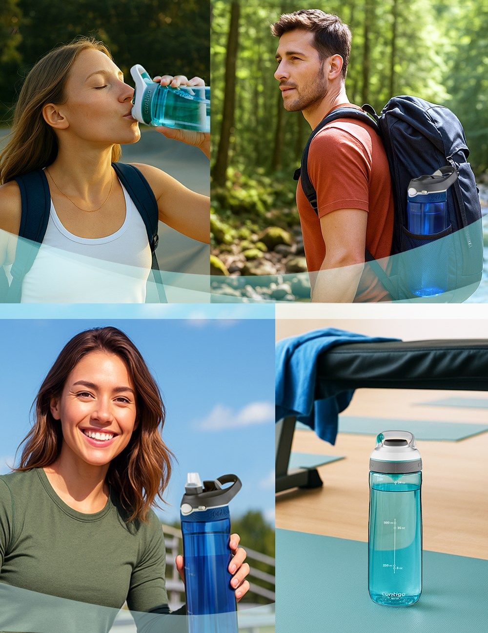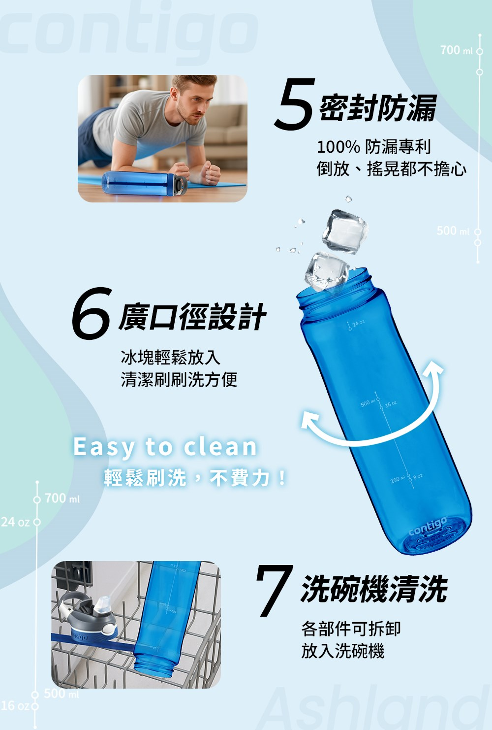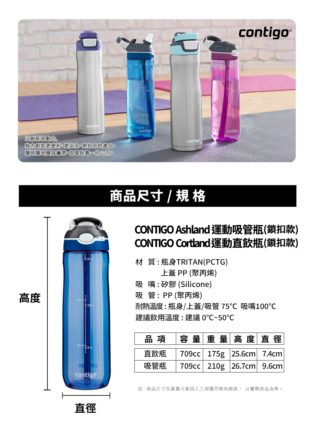 【美國Contigo】買1送1_Tritan防漏彈蓋吸管水瓶709ml(台灣總代理 運動水瓶 水壺 吸嘴)
