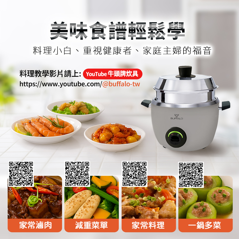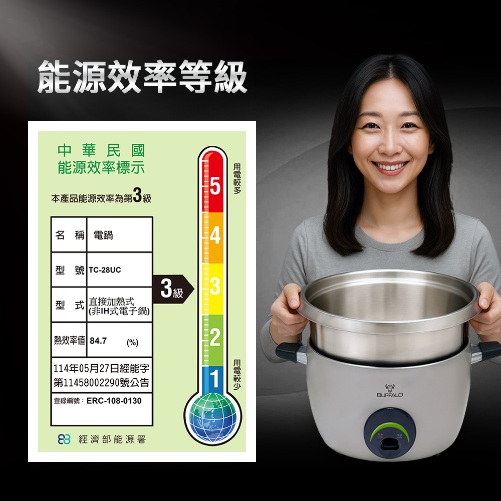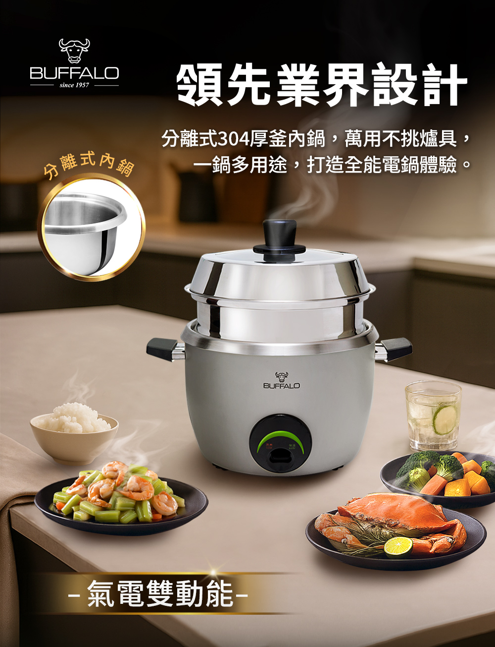【Buffalo牛頭牌】15人份(附不鏽鋼蒸籠)全能厲害電鍋/礦石灰TC28UC/可分離式牛頭鋼內鍋/304不鏽鋼