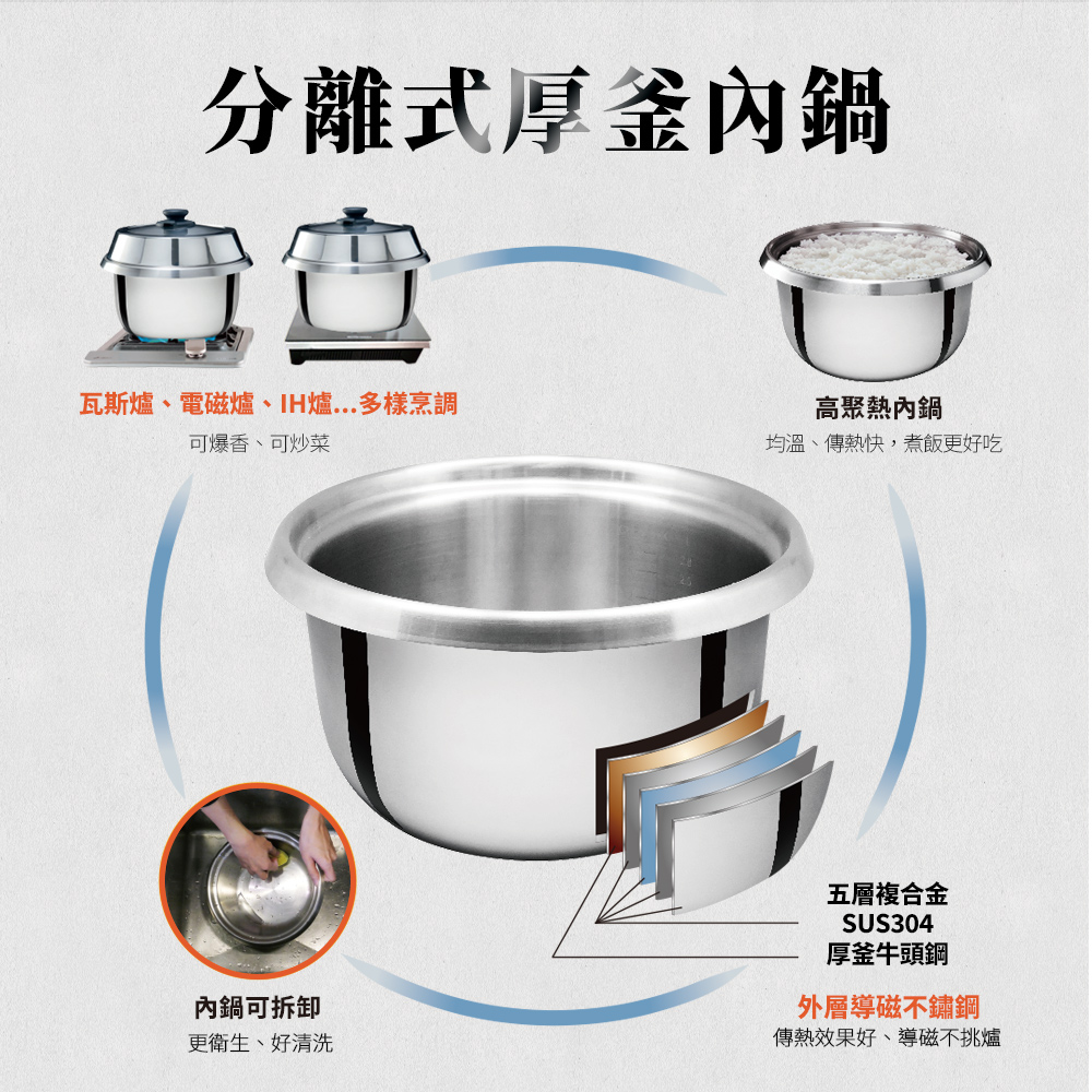 2. 領先業界304厚釜分離式內鍋