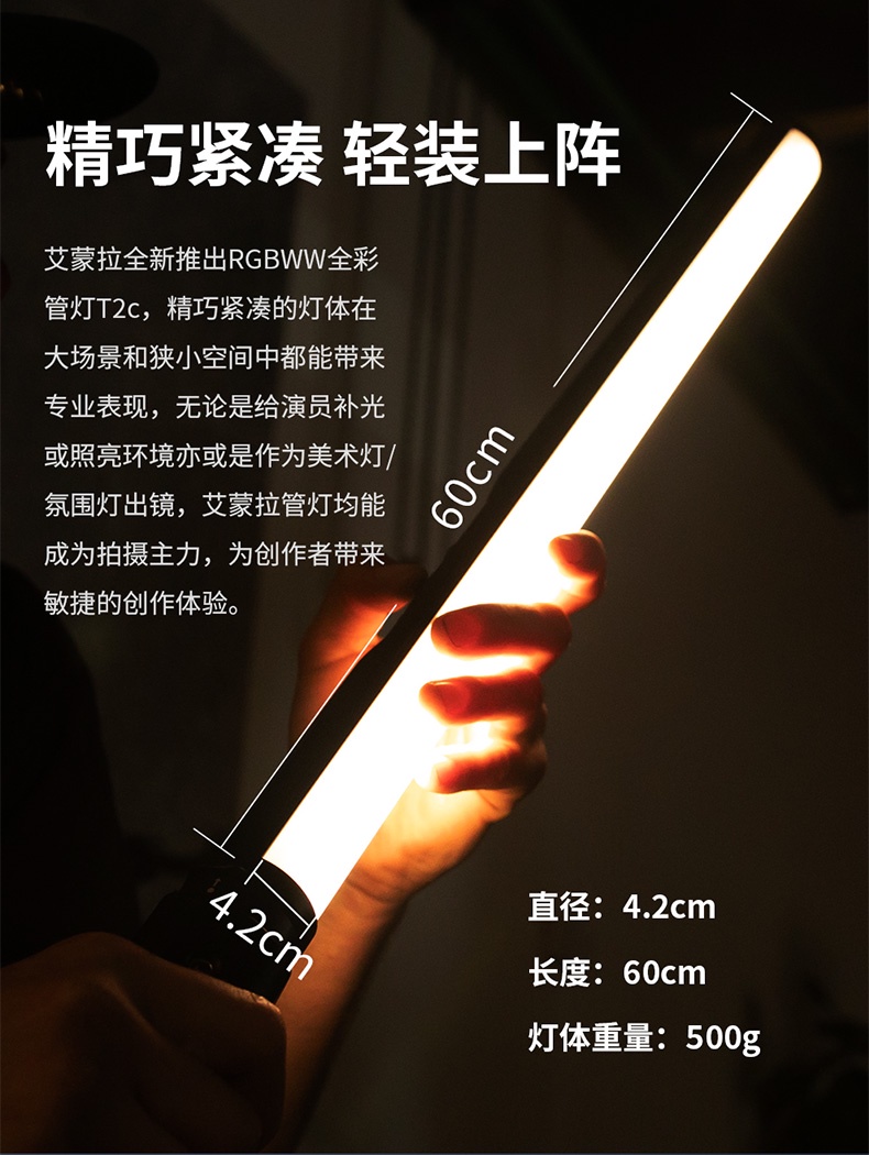 T2c/T4c強大的輸出能力和一流的色彩表現,為影視拍攝和個人創作提供出色服務。精簡的燈體在大場景和小空間中都能帶來極致表現,無論是給演員補光、照亮環境或是作為氛圍燈,均能成為拍攝主力,為創作者帶來無與倫比的敏捷創作體驗。