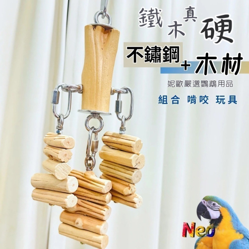 鐵木真『硬』系列 不鏽鋼 天然木頭 表面光滑 中款 適合中大型鸚鵡啃咬玩具 妮歐小賣部|鸚鵡用品玩具首選 🚚24H快速