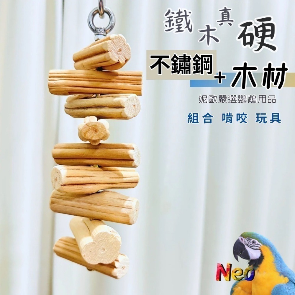 鐵木真『硬』系列 不鏽鋼 天然木頭 表面光滑 小款 適合中小型鸚鵡啃咬玩具 妮歐小賣部|鸚鵡用品玩具首選 🚚24H快速