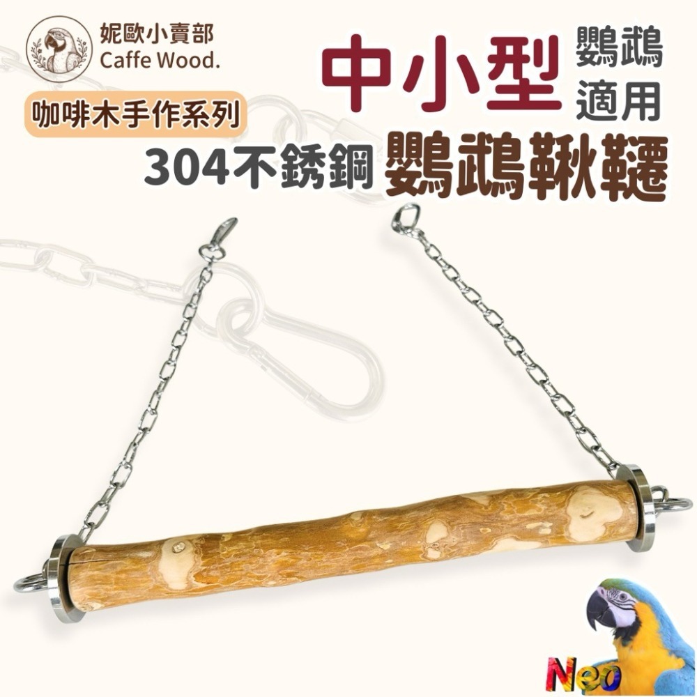 咖啡木手作系列 304不鏽鋼鸚鵡鞦韆 嚴選天然咖啡木製作 耐啃咬 無毛刺 適合中小型鸚鵡玩樂 妮歐小賣部|鸚鵡用品玩具首