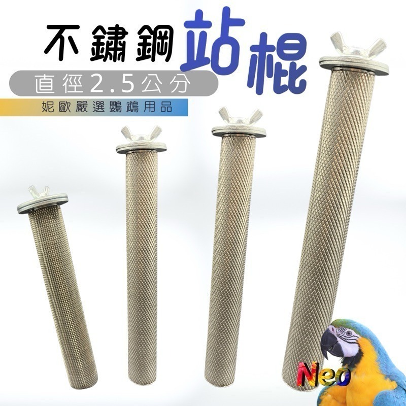 不鏽鋼磨指站棍 直徑2.5cm 多種長度 適合中、小型鸚鵡 單邊單鎖方便拆 妮歐小賣部|鸚鵡用品玩具首選 🚚24H快速