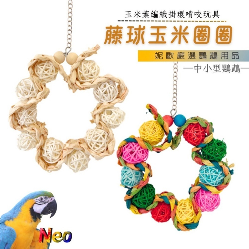 天然啃咬玩具 籐球玉米圈圈 玉米皮 籐球 原色款 彩色款 中小型鸚鵡 妮歐小賣部|鸚鵡用品玩具首選 🚚24H快速出貨