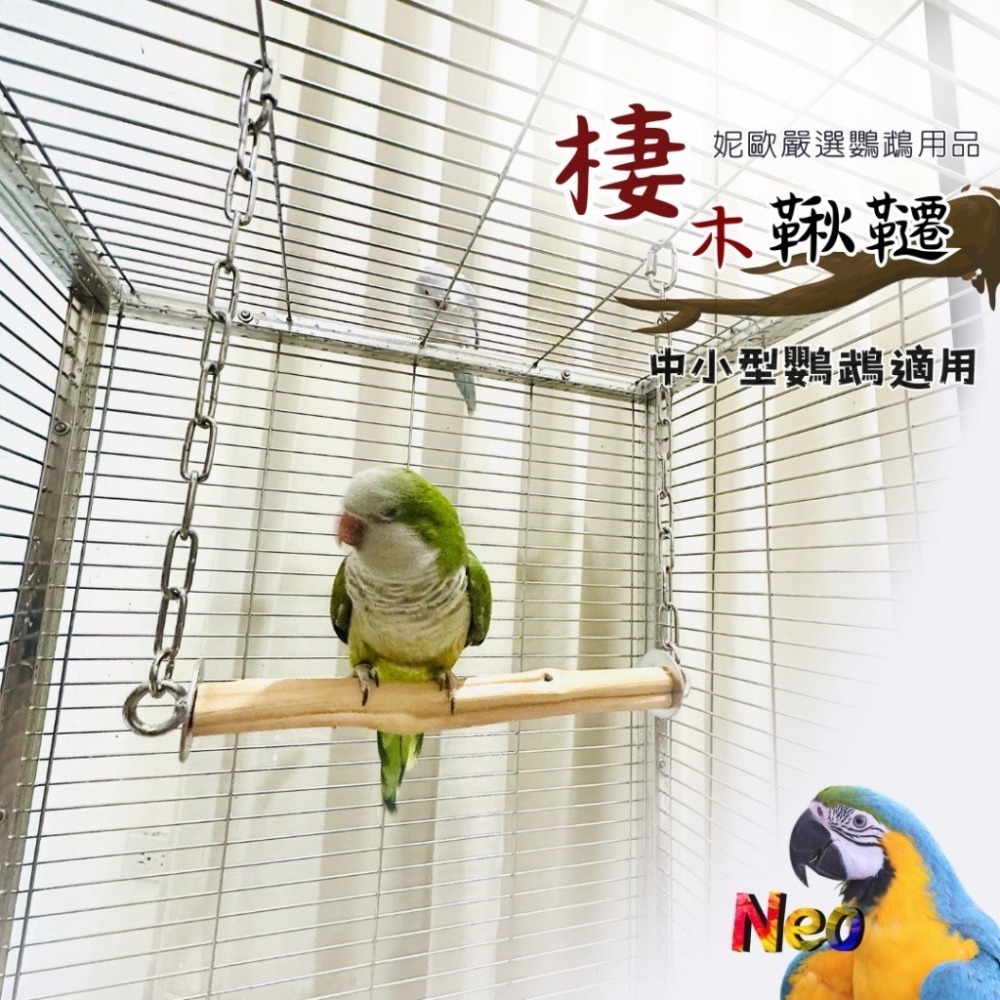 鐵木真『硬』系列 不鏽鋼 天然棲木鞦韆 表面光滑 適合中小型鸚鵡啃擺盪玩樂 妮歐小賣部|鸚鵡用品玩具首選 🚚24H快速