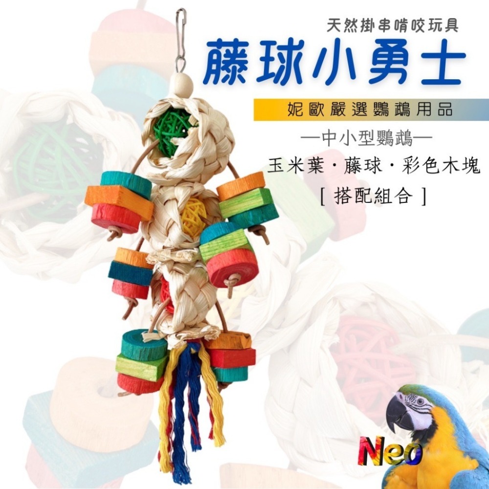 天然啃咬玩具 籐球小勇士 玉米皮 籐球 彩色木片 適合中小型鸚鵡 妮歐小賣部|鸚鵡用品玩具首選 🚚24H快速出貨