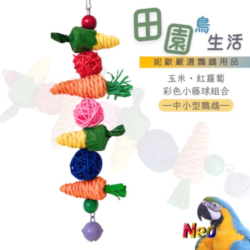天然啃咬玩具 玉米蘿蔔啃咬串 🌽我的開心農場🥕 玉米 蘿蔔 藤球 妮歐小賣部|鸚鵡用品玩具首選 🚚24H快速出貨