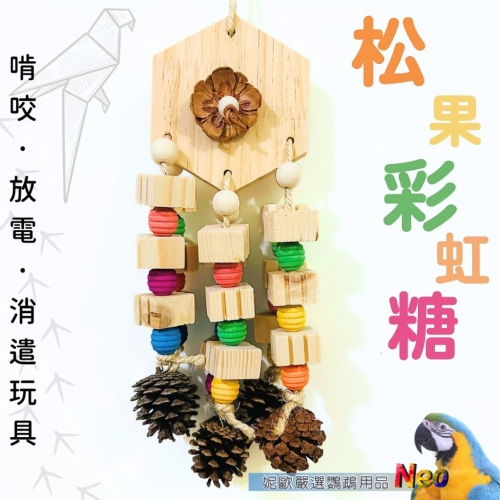 天然啃咬玩具 松果彩虹糖 六角大木片搭配彩色木珠點綴 啃咬 放電 大玩具 妮歐小賣部|鸚鵡用品玩具首選 🚚24H快速出
