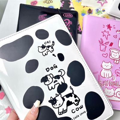 (🆕)原創乳牛貓咪黑色高級ins風 A5四宮格卡冊 偶像明星愛豆拍立得專輯小卡 收納6孔活頁相冊 追星必備