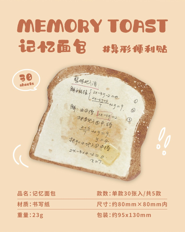 (現貨秒出)NOTE FOR記憶麵包系列 便條紙 簡約ins異形 可愛趣味 學生筆記文具 留言備忘便籤