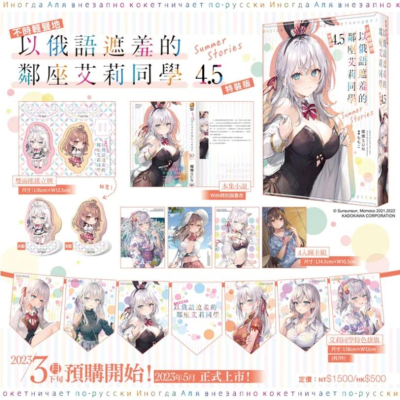 【預購】不時輕聲地以俄語遮羞的鄰座艾莉同學 4.5 Summer (中文小說) 5/25上市 到貨後隨即發貨 【特裝版內容收錄】 ●本集小說With特別版書衣 ●艾莉同學特色掛旗(尺寸:L18cm×W12cm,共7片) ●雙面搖搖立牌(尺寸:L16cm×W12.5cm) ●4入圖卡組(尺寸:L14.5cm×W10.5cm) ★達成2020年度紙本小說新刊銷售額&電子書初速下載數歷代雙料冠軍! ★【阿薩。再也見不到你了嗎……】她思念的對象到底是? ★描寫學生會成員們燦爛夏季插曲的外傳短篇集登場! 【內容介紹】 令人預感會展開新戀情的夏季集訓。不過,艾莉等人的夏天還沒結束! ──政近因為有希的催眠術而成為溺愛系型男? 出乎預料的肌膚之親使得妹妹與隨從差點神魂顛倒! ──艾莉進行超辣修行而前往拉麵店,遇到一名意外人物? ──想讓妹妹穿上可愛的泳裝!解放慾望的姊姊害得艾莉成為換裝娃娃? ──又強又美麗的姊姊大人,那對情侶墜入情網的過程── 描寫學生會成員們燦爛夏季插曲的外傳短篇集登場! 【阿薩。再也見不到你了嗎……】 在約定場所等待著真命天子的她,內心的祕密即將揭曉── ※ 另有 [一套販售] 及 [其他集數],請先詢問喔♥ .。*﹡ - *﹡。.. - *﹡。.. *﹡。..