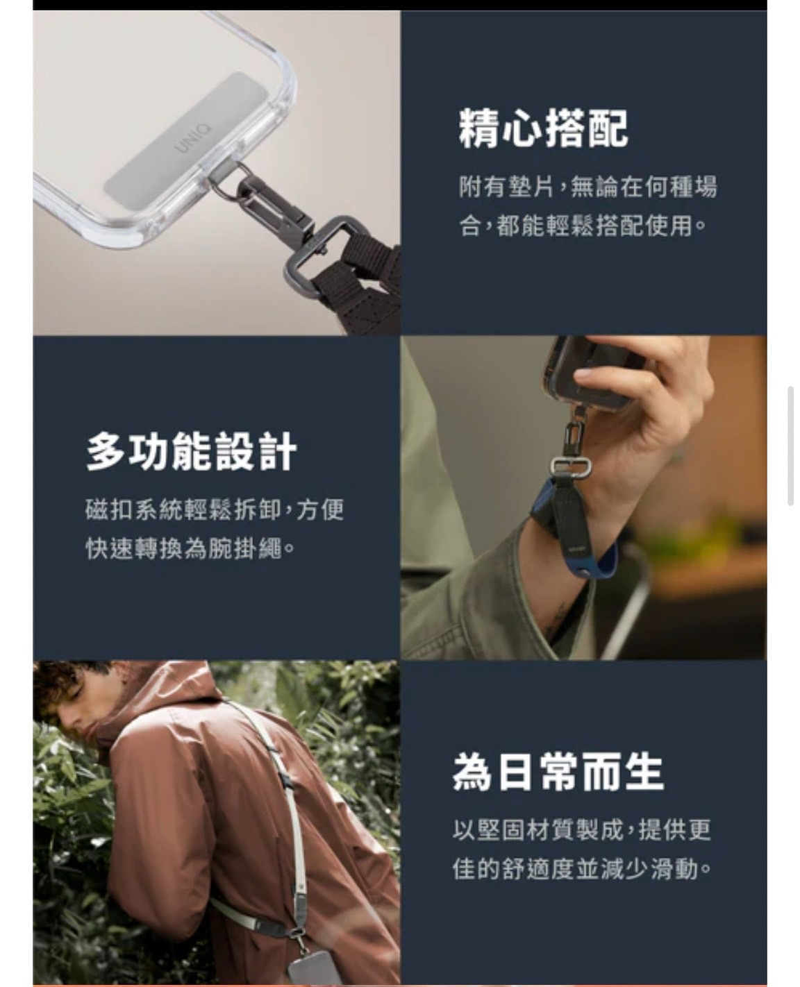 頸掛繩與腕掛繩二合一,滿足各種日常所需。配備鋅合金扣環,打造新穎風格。附贈掛繩通用墊片,通用各種手機殼。適用 55 - 80 公分,輕鬆調整長度。