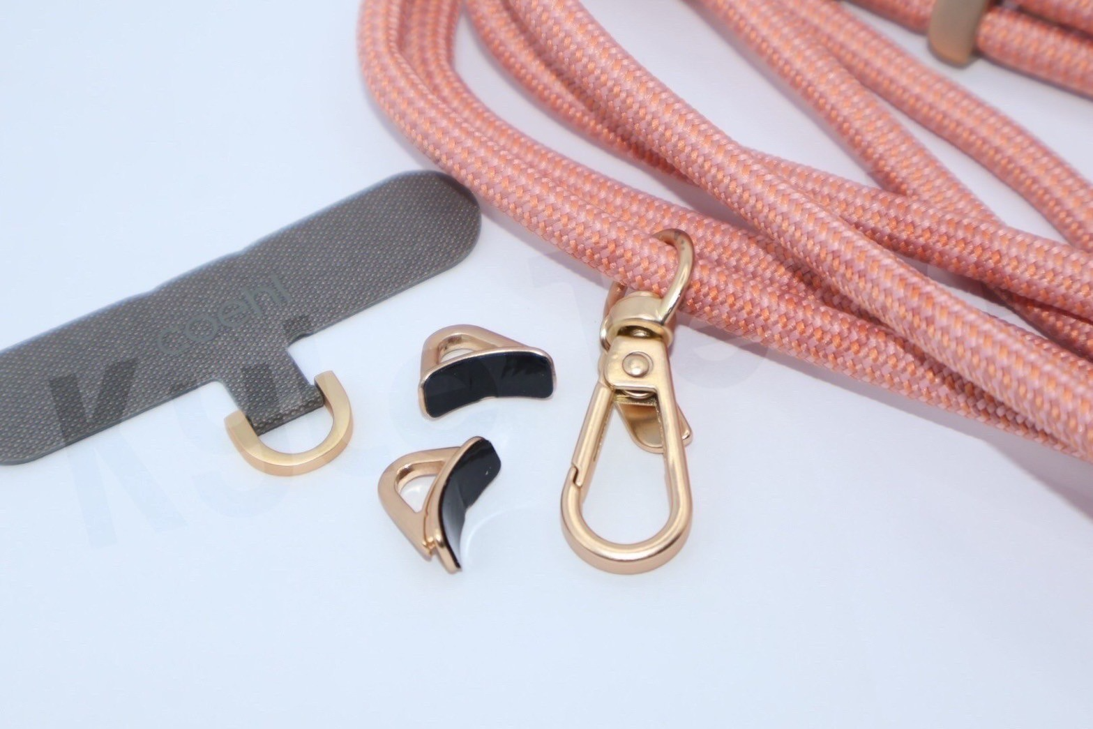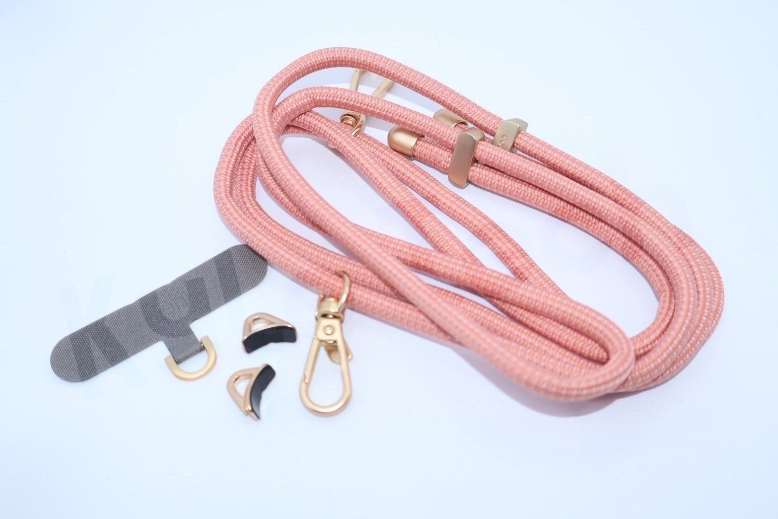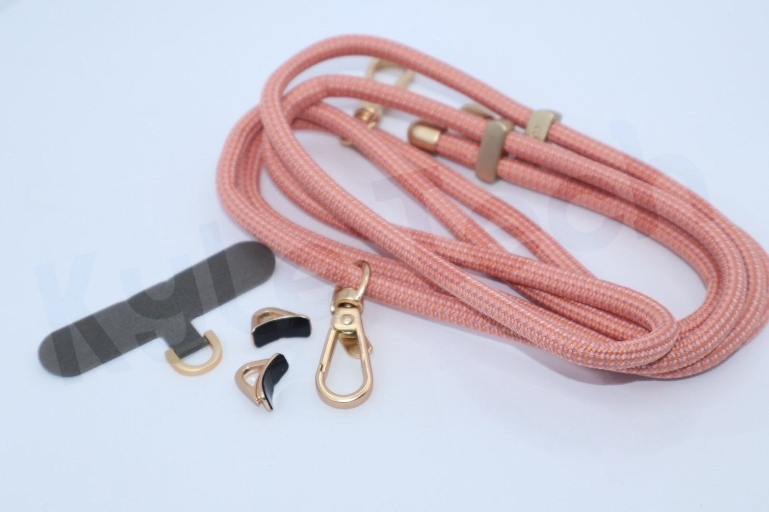釋放雙手,輕巧、可調節、極具時尚感。適用於手機和各種配件,兼容所有手機殼。柔軟的編織繩風格製成,配有鋅合金掛勾。附贈掛繩通用墊片。