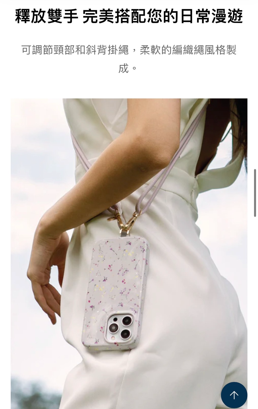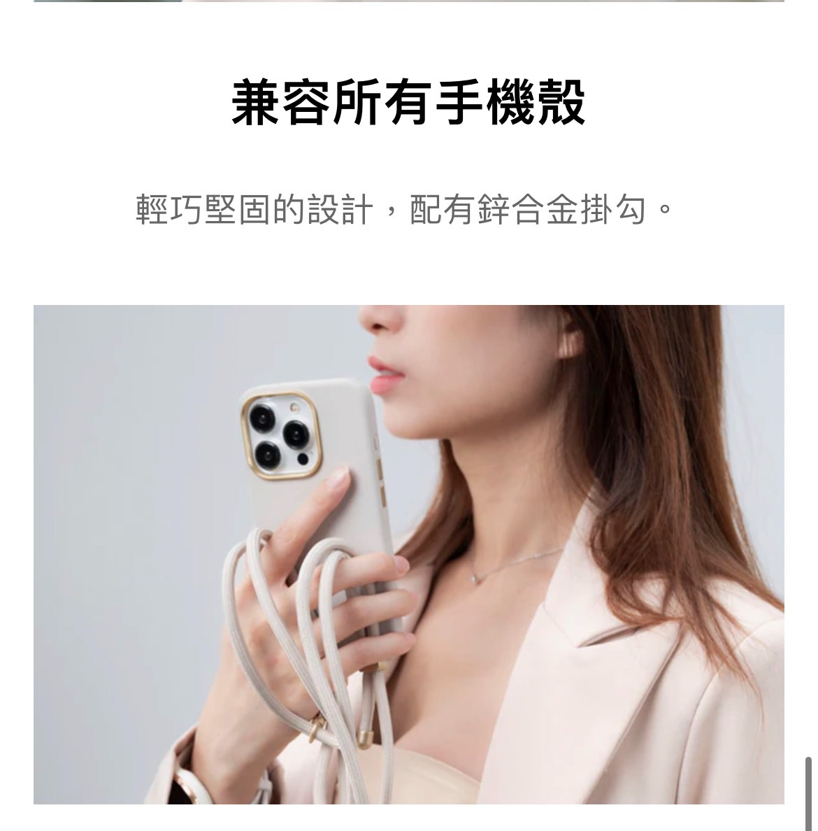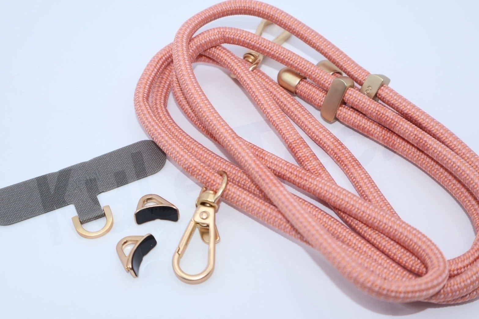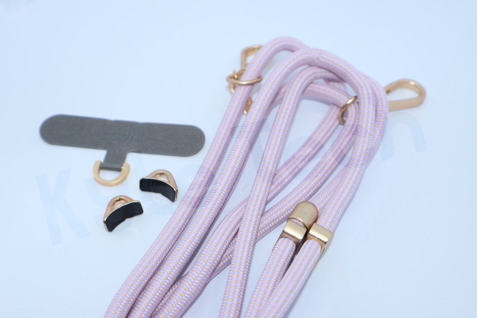 釋放雙手,輕巧、可調節、極具時尚感。適用於手機和各種配件,兼容所有手機殼。柔軟的編織繩風格製成,配有鋅合金掛勾。附贈掛繩通用墊片。