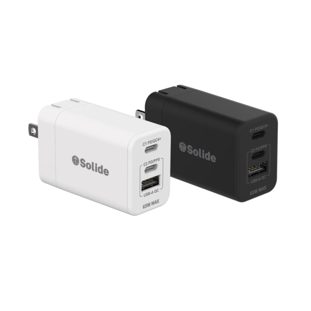 採用 GaN 氮化鎵 + PPS 快充技術兼具高效能與快速充電,卓越效能PD3.0/QC4+快充 最高65W的輸出功率可充筆電,同時為3個設備充電輕鬆握於手心,方便輕鬆放入口袋輕鬆摺疊充電插頭,移動便利