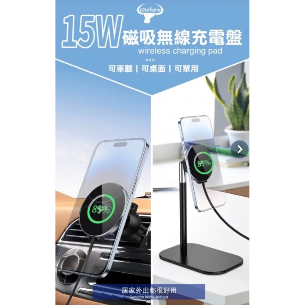 15W無線磁吸充電盤: 針對車架/立架/單盤設計,讓您無論在家或外出,都能輕鬆充電。