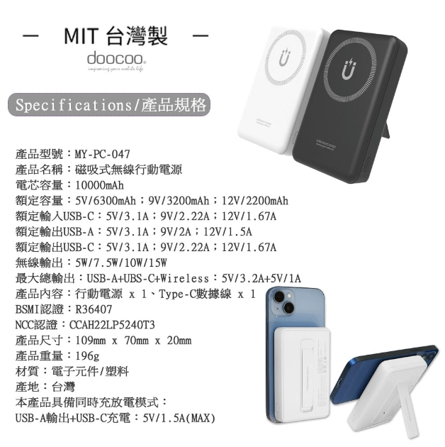 - 最高支援無線15W快充