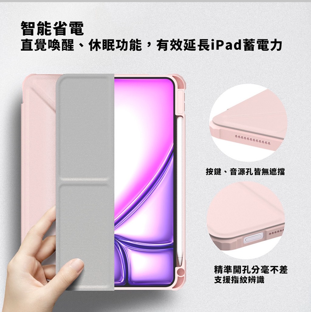 ● 智能休眠、喚醒功能,靈敏偵測,可有效減少iPad耗電,延長其壽命。