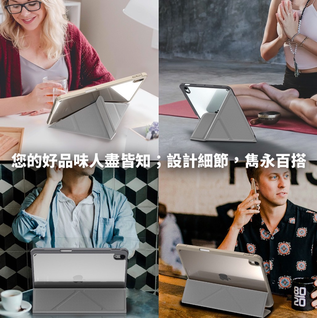 ● 多角度站立面蓋設計,適用於各種iPad使用情境。