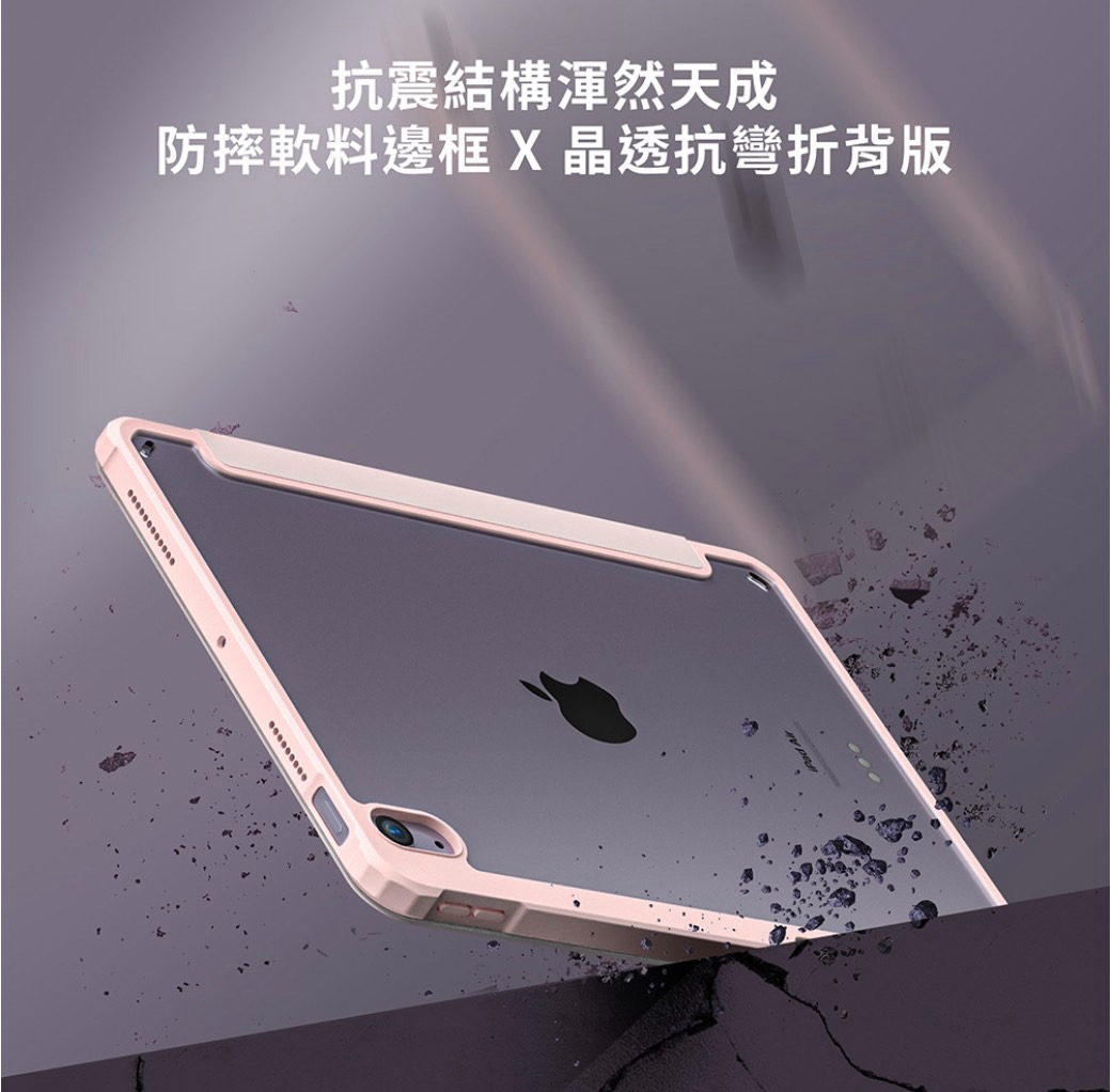 ● 防摔結構邊框與透明背板,有效防止iPad彎折與刮傷。