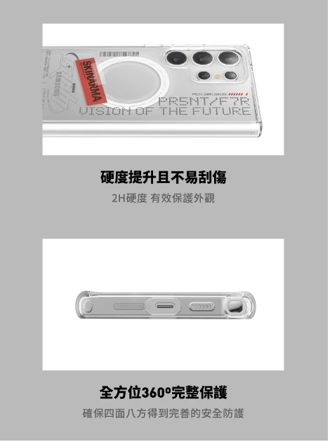 支援磁吸 / 無線充電功能空氣氣囊加厚防護全方位360º完整保護2H硬度提升且不易刮傷鏡頭加高設計保護相機鏡頭