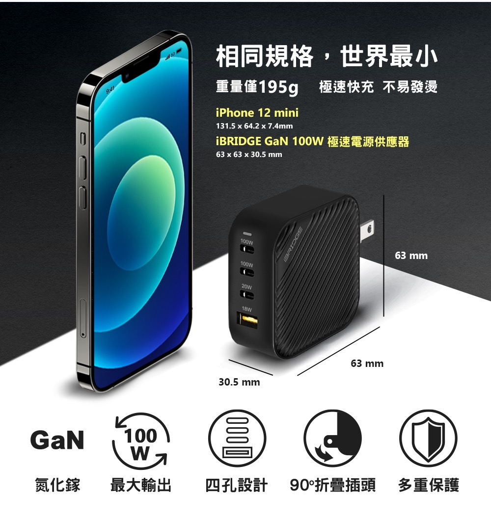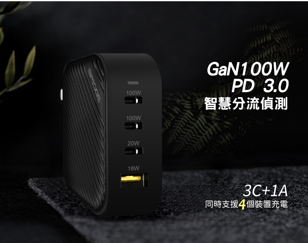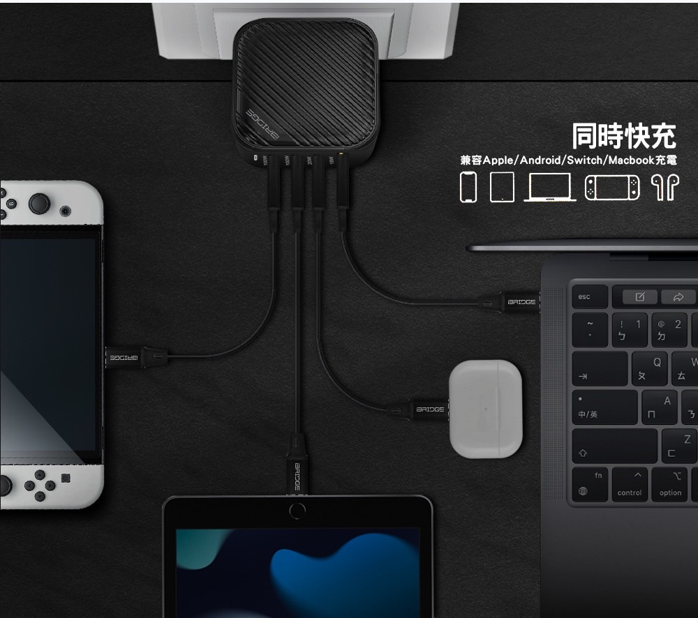 ● 3個USB-C & 1個USB-A,可同時充電四個裝置