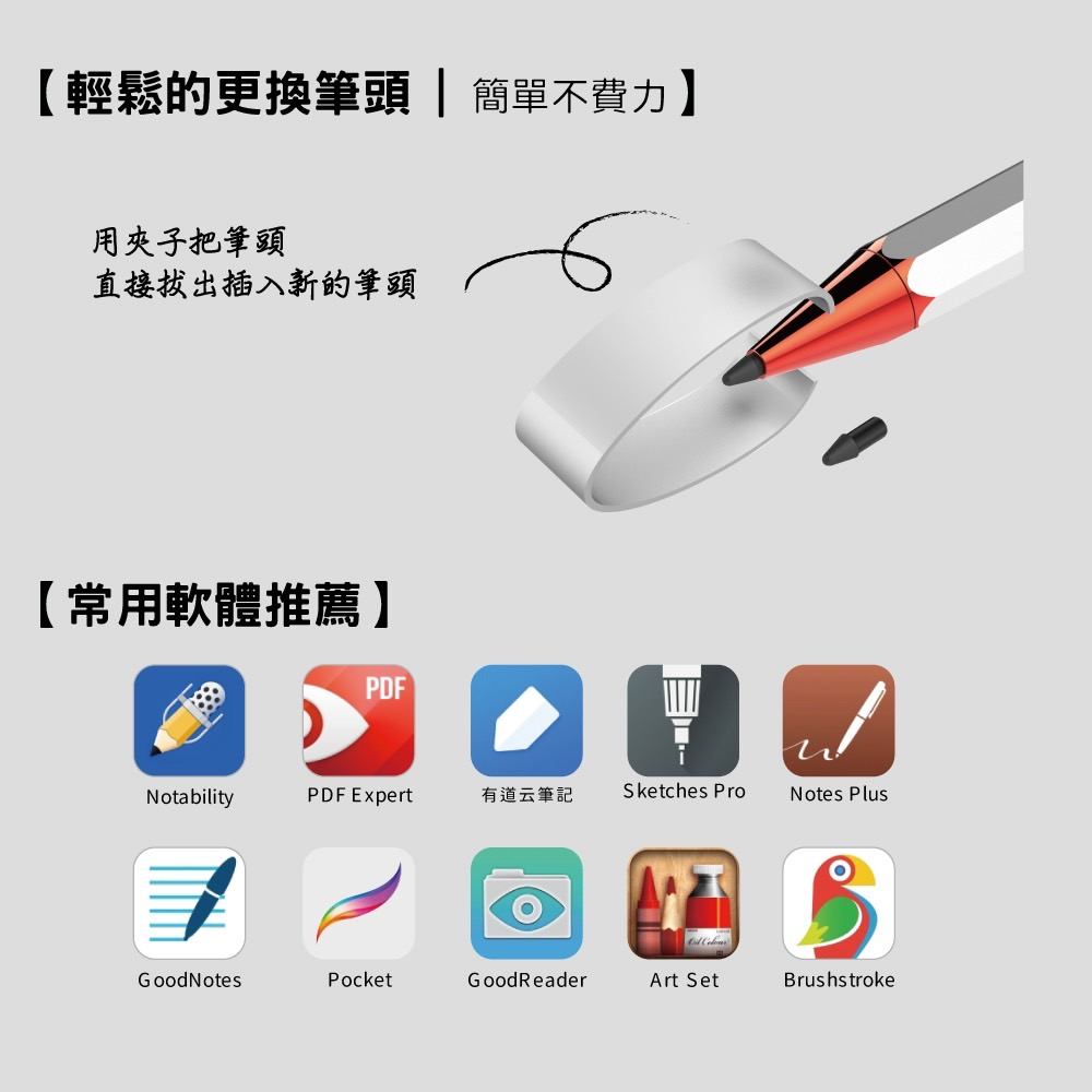 ● 高耐磨筆頭,書寫感佳,防誤觸又不傷螢幕