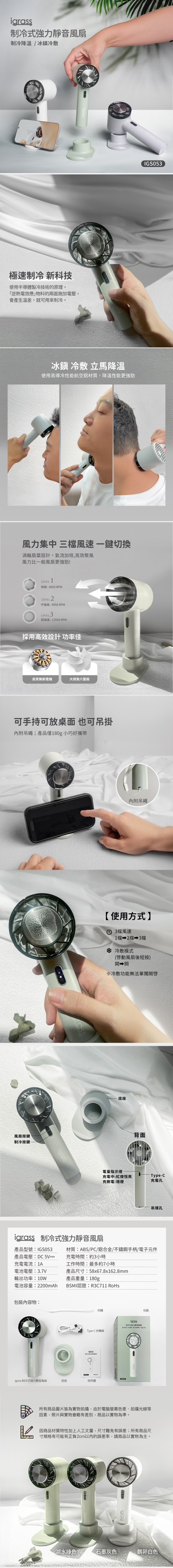 ● 可手持、可放桌面、也可吊掛