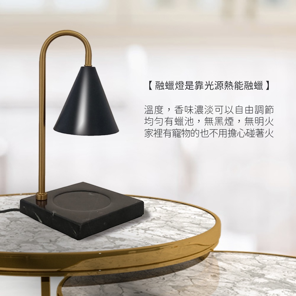 ● 燈具造型簡約,大理石材質底座擺放平穩,融燭燈質感瞬間提升