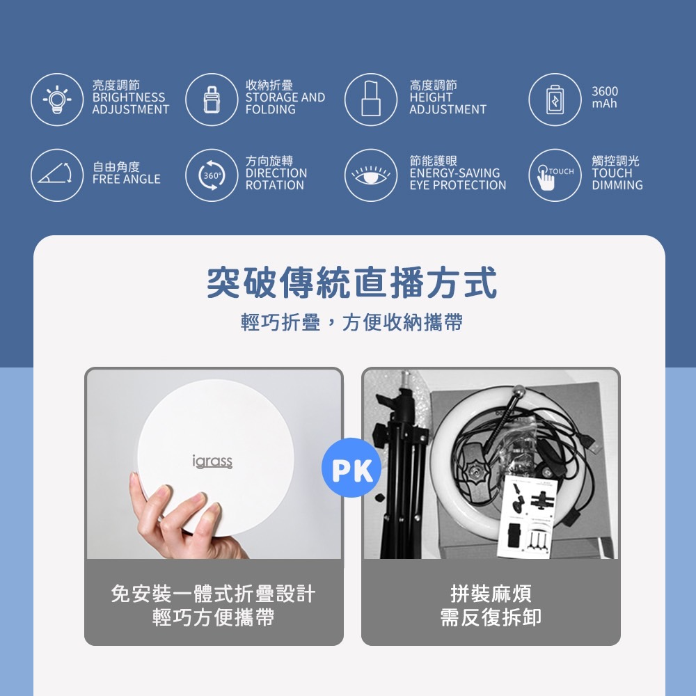 ● 360度旋轉夾頭,多功能手機夾座,多種角度模式
