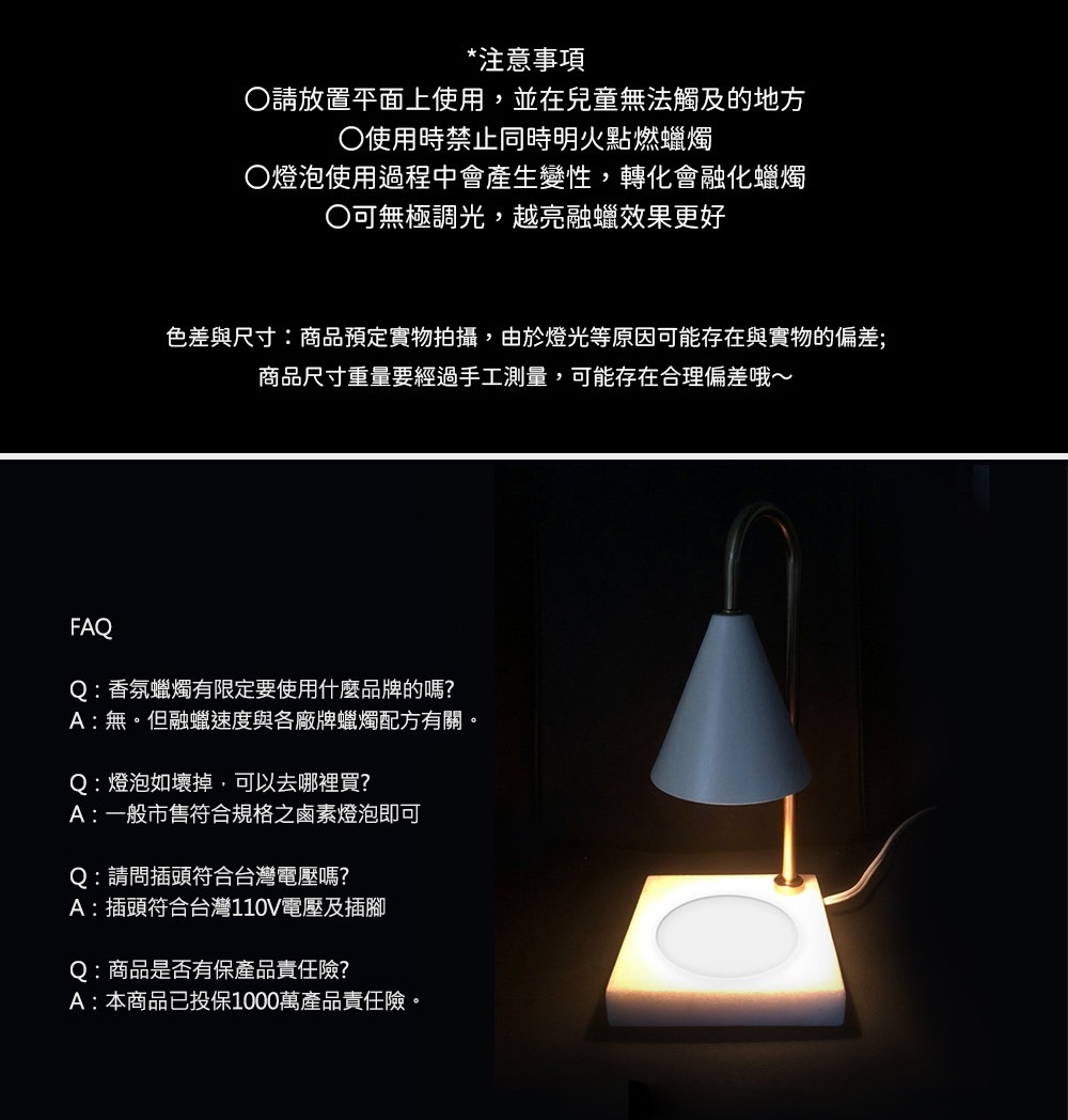 ● 暖燭兼具照明設計,以燈源加熱溶解香氛蠟燭,無煙無火更安全