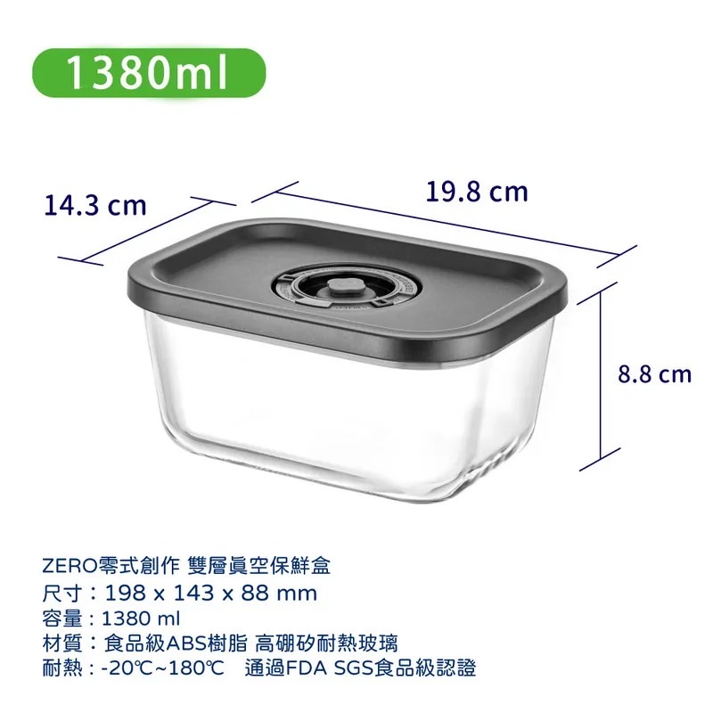 【ZERO | 零式創作】SPACEBOX+ 雙層真空保鮮盒 (800ml / 1380ml)