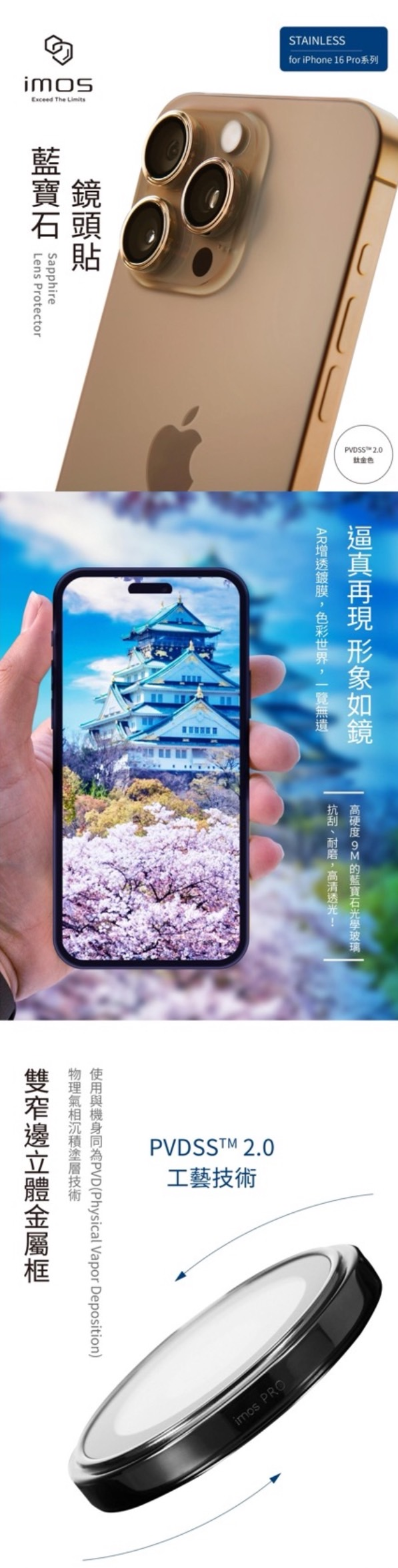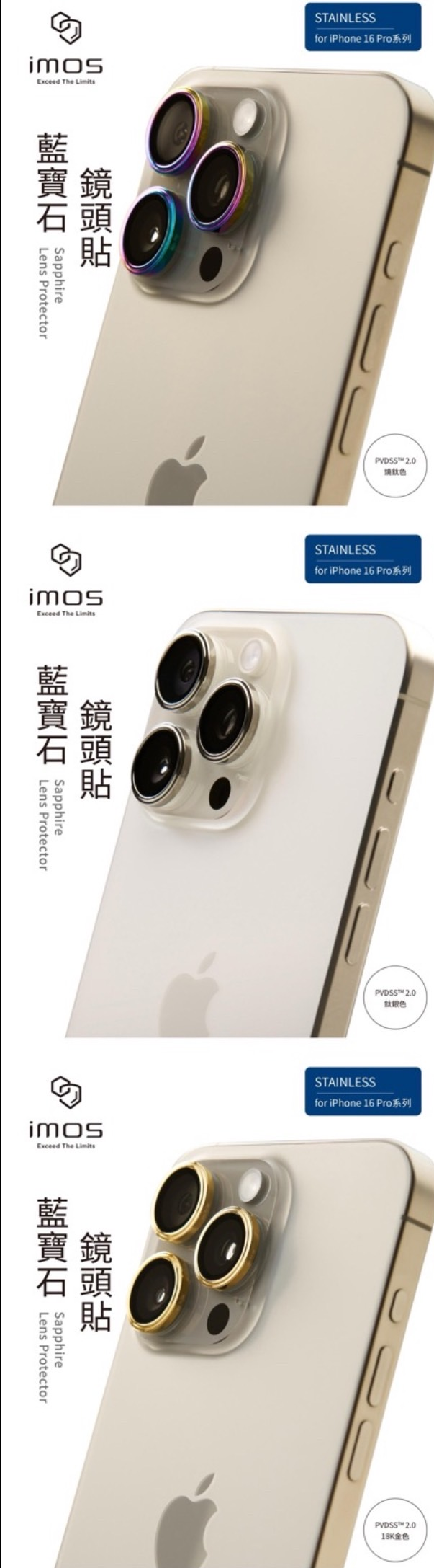 iPhone16 Pro / 16 Pro Max 藍寶石鏡頭保護鏡 (三顆)-6色