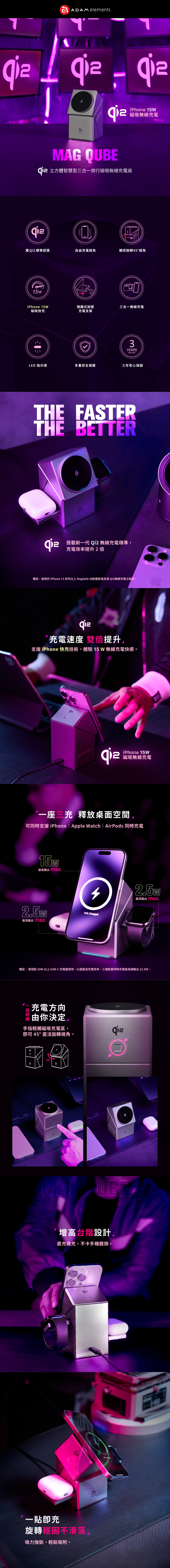 ◼︎ 搭載Qi2快充模組充電效率提升2倍,支援iPhone無線充電最高可達15W。