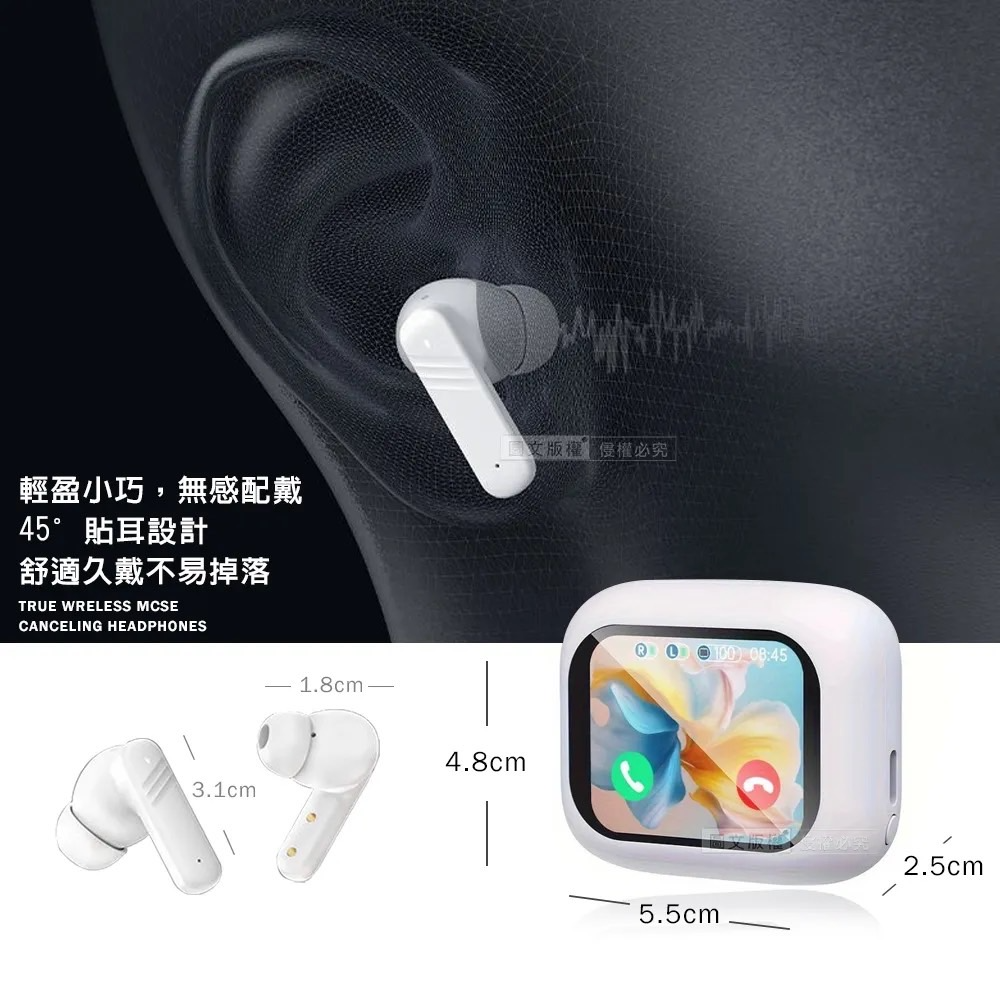 - 全彩螢幕多功能連接|v5.4開蓋即連線,可單耳使用