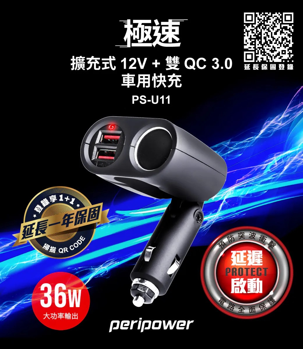 PS-U11 極速擴充式 12V + 雙 QC 3.0 車用快充