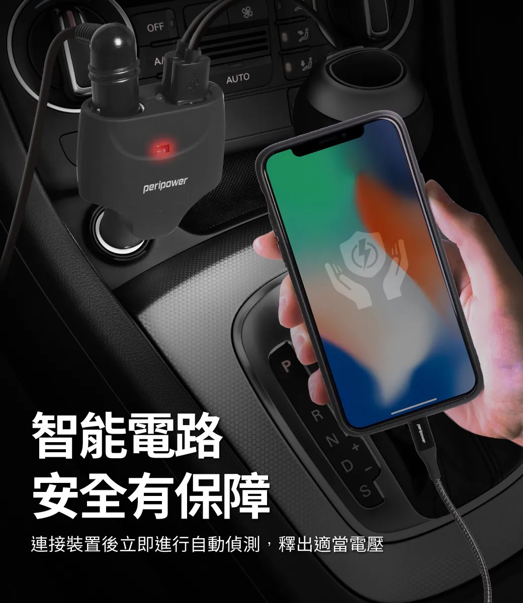 • 智能電路 IC,預防過溫、過載、過充、短路等狀況,行車充電更放心