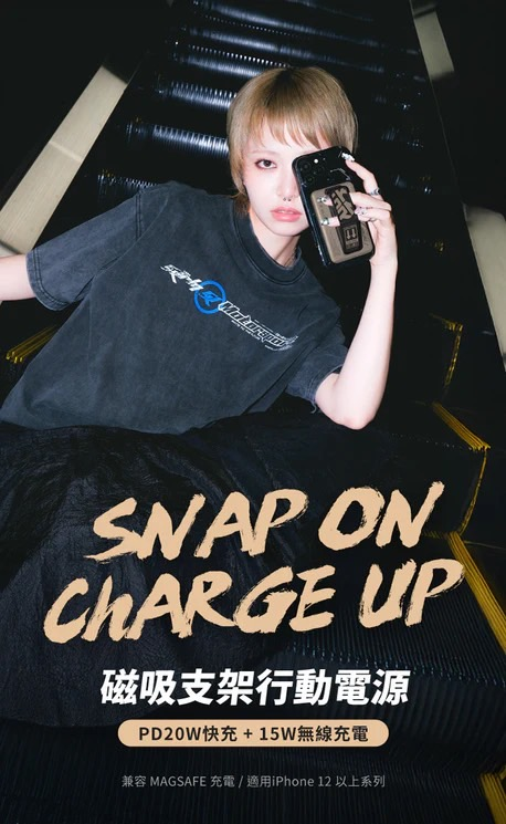 2段式可收納磁吸支架,可任意調整觀看角度支援Magsafe磁吸功能,精準對位支援PD 20W快充與最高15W無線充電功能兼容iOS、Andriod系統等設備內建LED顯示燈可顯示剩餘電量獨特磁吸內圈風格設計,展現獨一無二風格