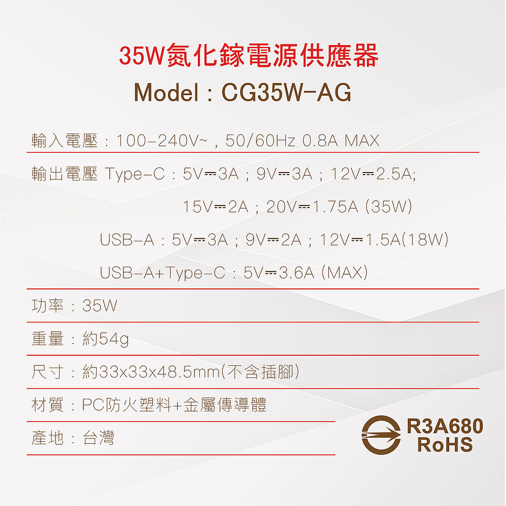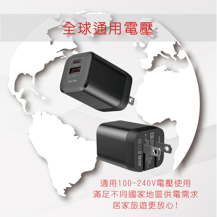 Mr.Battery 電池先生 台灣製 GaN 35W PD + QC3.0 USB 氮化鎵電源供應器