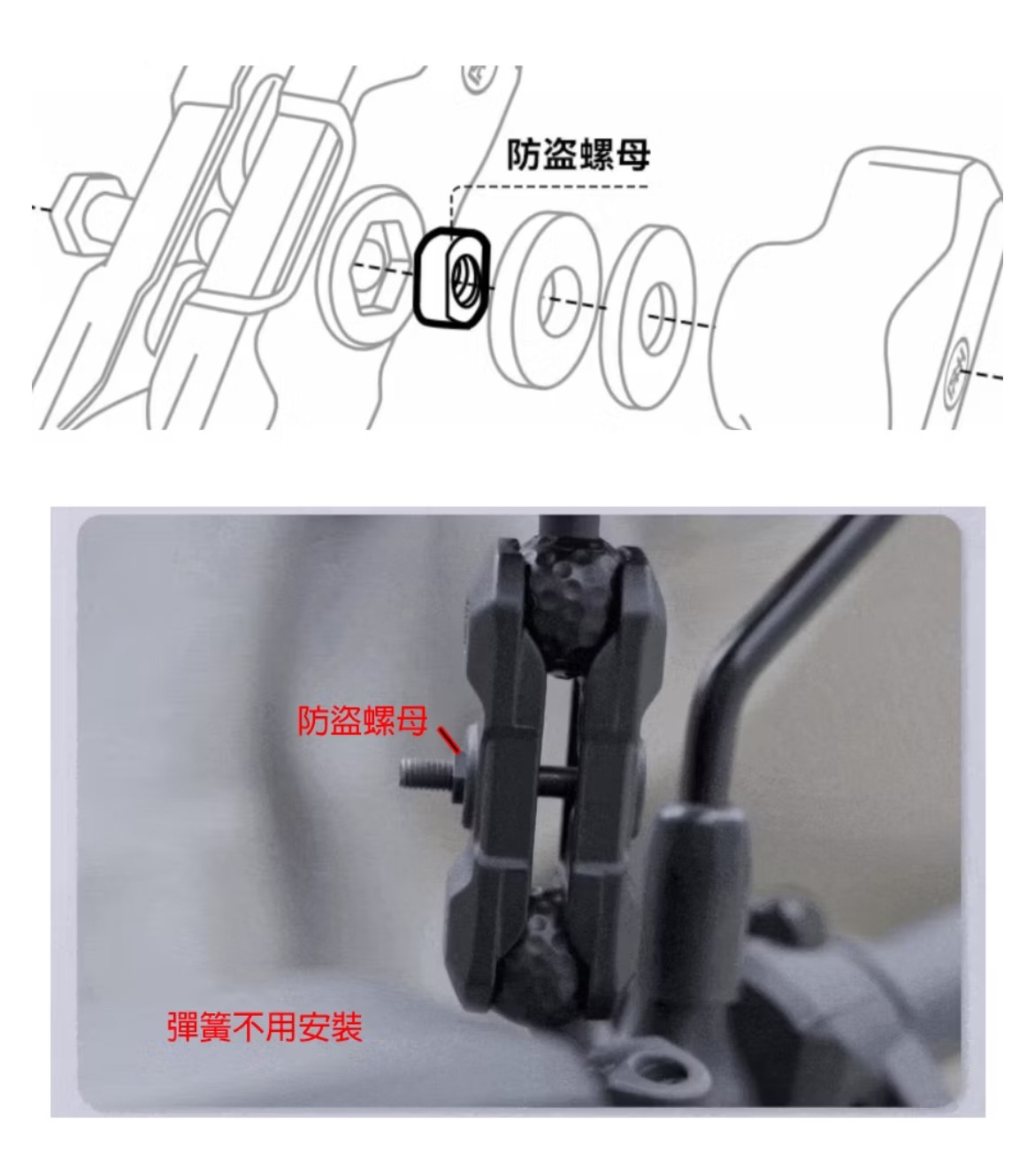 安裝防盜螺母建議不要裝彈簧(不好安裝)