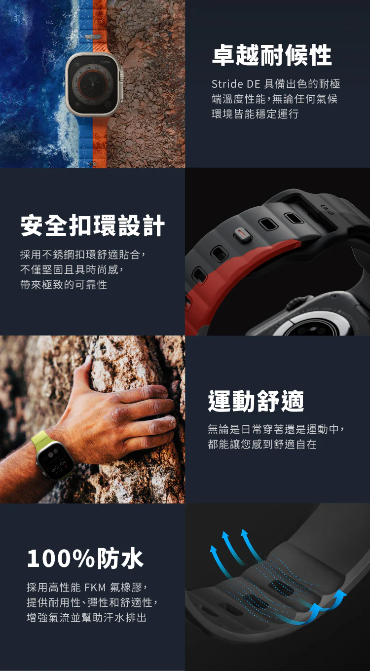 Stride DE 防水FKM橡膠不鏽鋼高質感錶帶