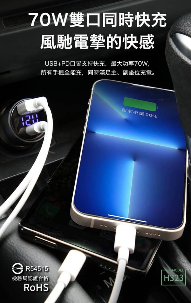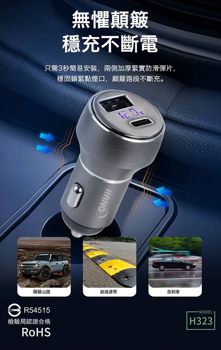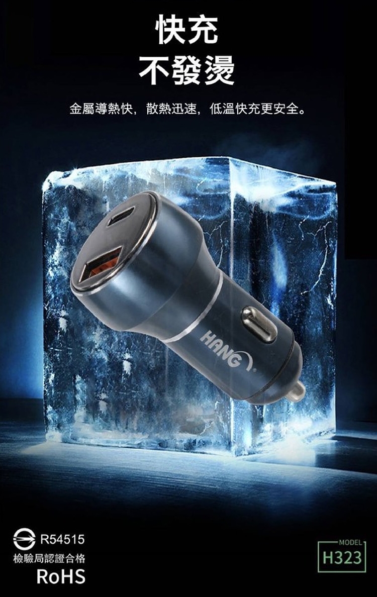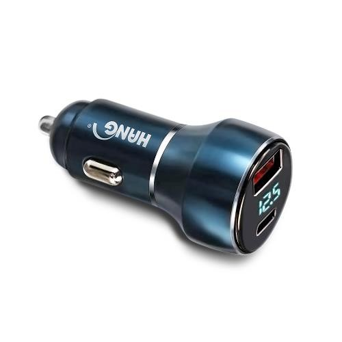 HANG 70W PD+QC 鋁合金 雙孔快充車充頭-LED電瓶顯示充電器