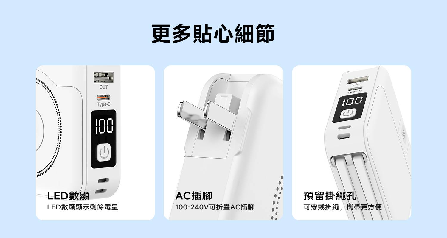 在同款式、同容量的行動電源中,我們的產品擁有最小的體積和最輕的重量,讓你輕鬆攜帶,隨時隨地保持電力滿格。