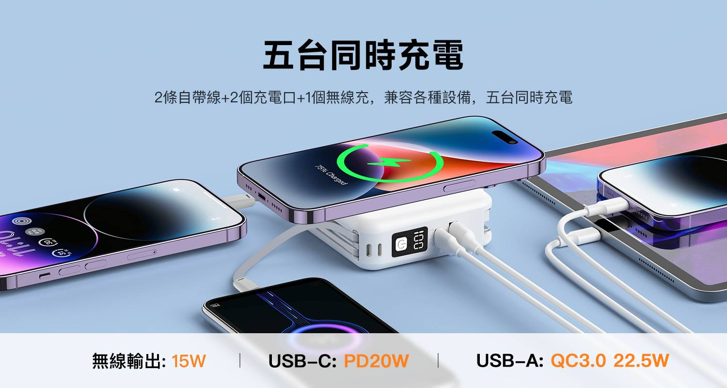 獨特的自帶線可拆卸設計,不僅能為其他設備充電,也能直接為行動電源充電,擺脫忘記攜帶充電線的困擾。